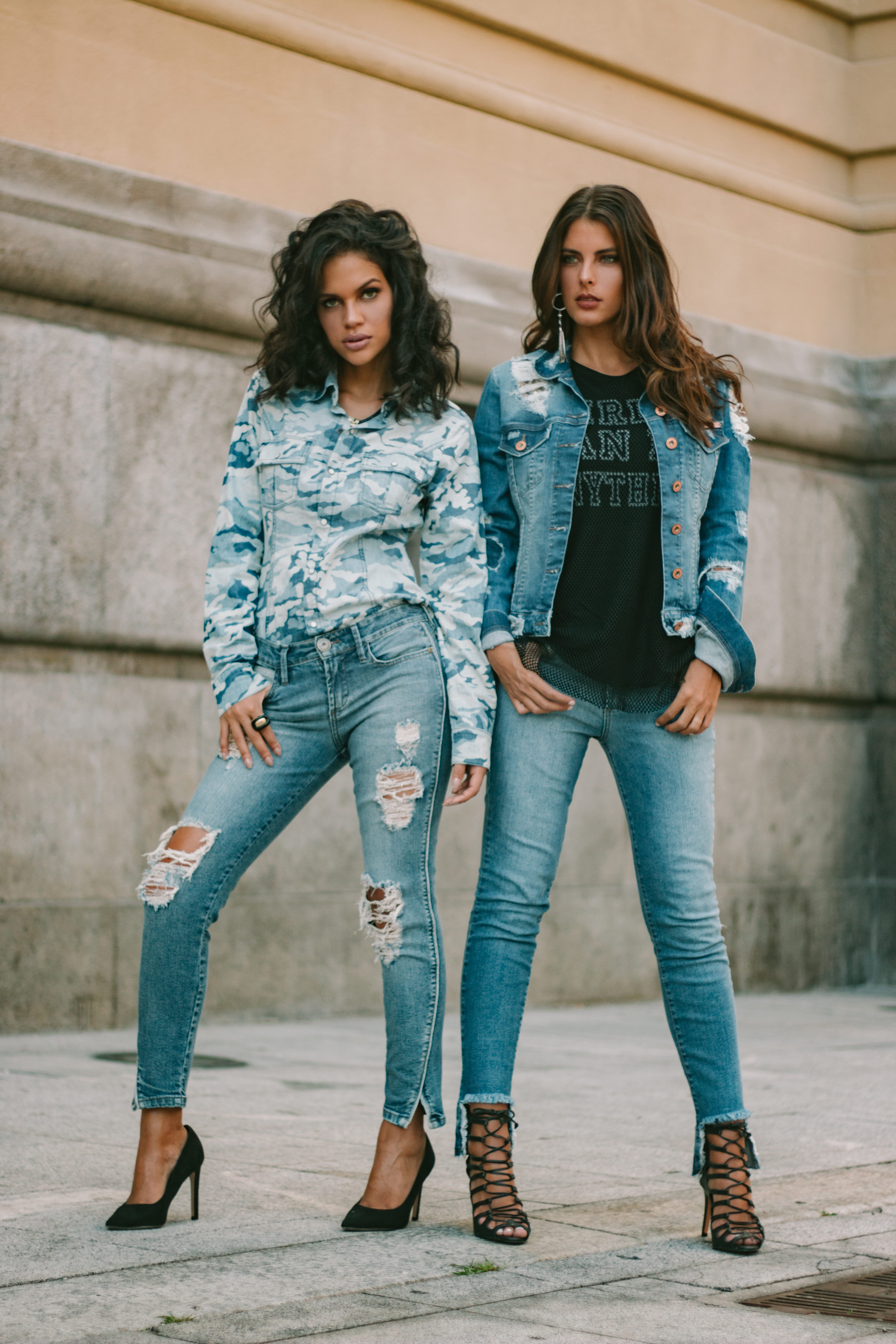 A linha jeans aposta em uma vasta gama de lavagens nas calças que vão do délavé ao amaciado, todos com tecidos confortáveis de alta performance. Os rasgos continuam em alta! Destaque para as peças hyperdestroyed com patches de paetê, aplicações de tule e sarja resinada. A nova tecnologia lançada nessa coleção de calças é o tecido bielástico que estica na trama e no urdume além de possuir o t_400 que permite o elastano voltar a sua forma original.
