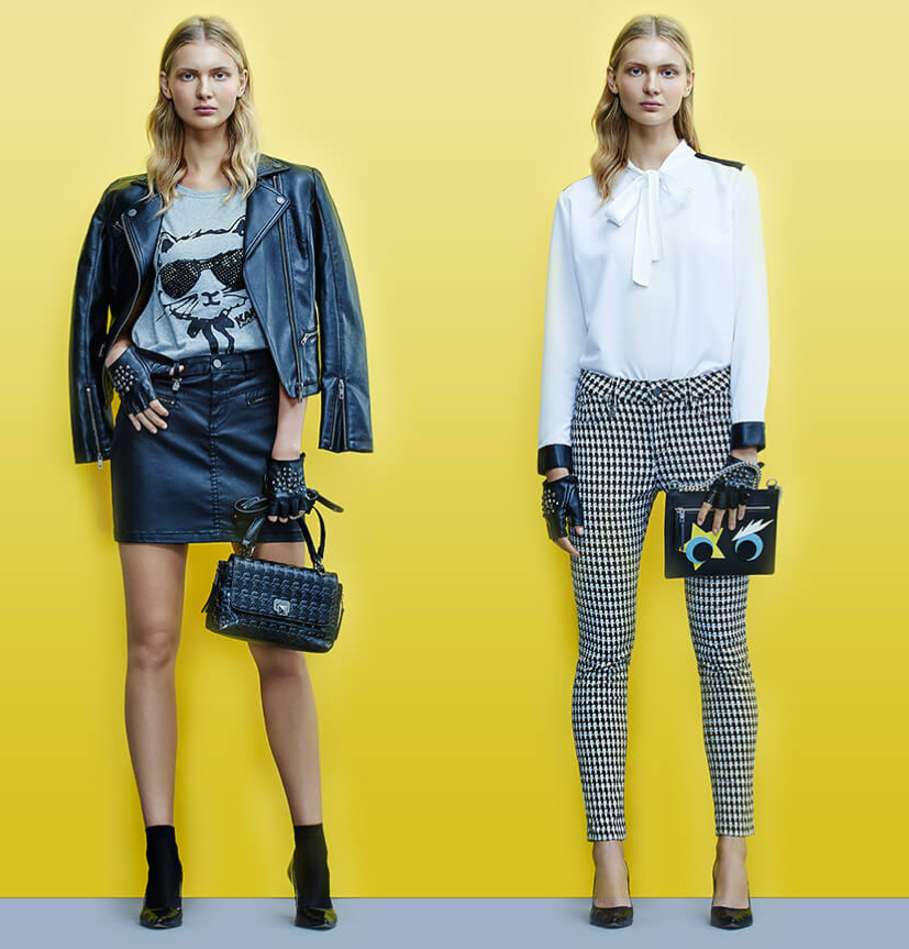 “Karl Lagerfeld é um dos nomes mais importantes da moda mundial, um gênio criativo, que pensa a frente de seu tempo e que sabe o que a mulher vai desejar usar, muito antes dela saber.”, diz Marcella Kanner, Gerente de Marketing da Riachuelo. Ele é diretor criativo de algumas das marcas mais importantes da história da moda, a Chanel e a Fendi. A coleção tem como destaque as peças em couro ecológico, o macacão em jersey e camisetas com estampas bem-humoradas que são marca registrada do estilista. Os gadgets, como capas de celular, e as bolsas trazem prints divertidos, caso da gata Choupette, e prometem se tornar hit da temporada.