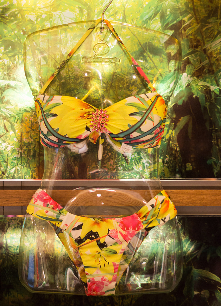- Biquini Amarelo Floral de R$ 189,90 por R$ 99,90. Loja Sol & Energia.