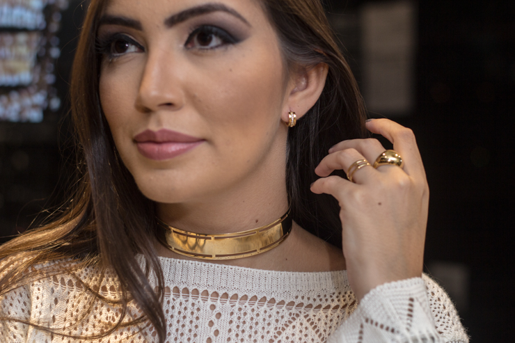- Morana – Gargantilha R$ 59,00. Anel maior R$ 49,00. Anel menor R$ 45,00. Brinco R$ 49,00.