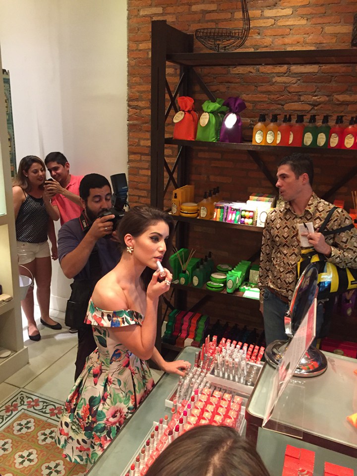 - Camila Coelho apresentando a linha de maquiagem Phebo! Foto: Rafa Rabelo