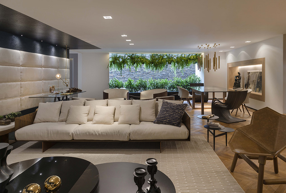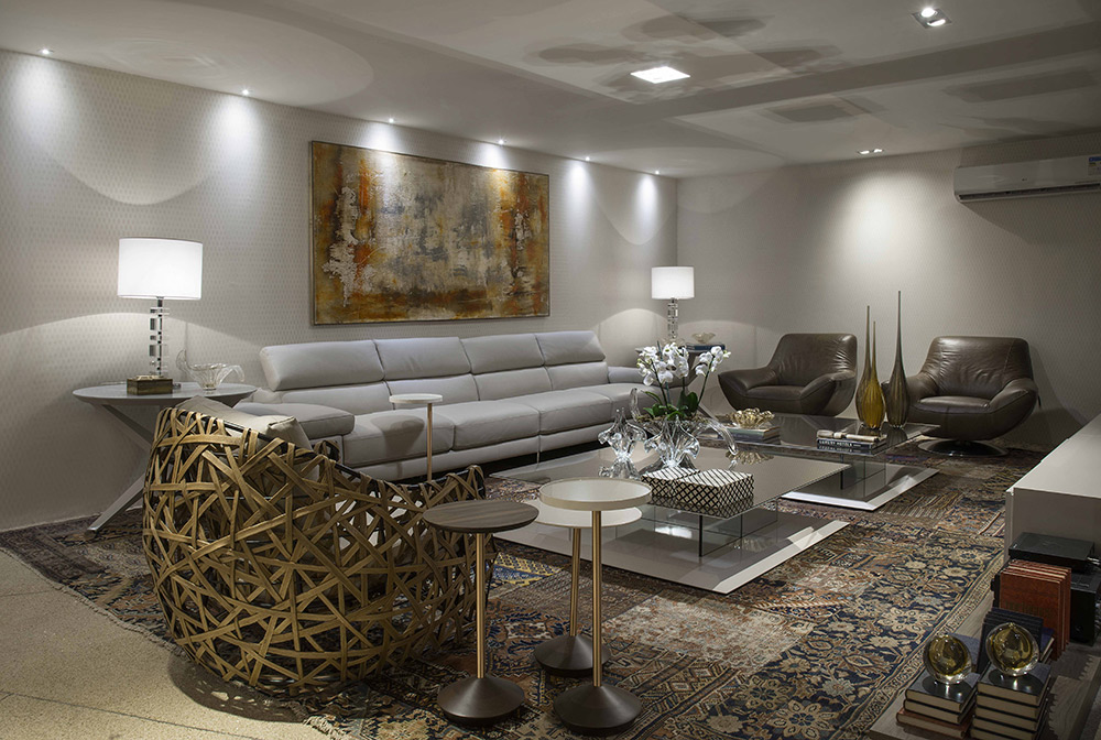 - Loft Inside – Miguel Gustavo. A proposta é receber amigos com conforto e elegância, no espaço de 130m². A cartela de cores neutras ganha personalidade na presença de diversas texturas, com alguns pontos metalizados que atraem o olhar. Outro recurso importante é a iluminação, que ressalta obras de arte e peças-chave.
