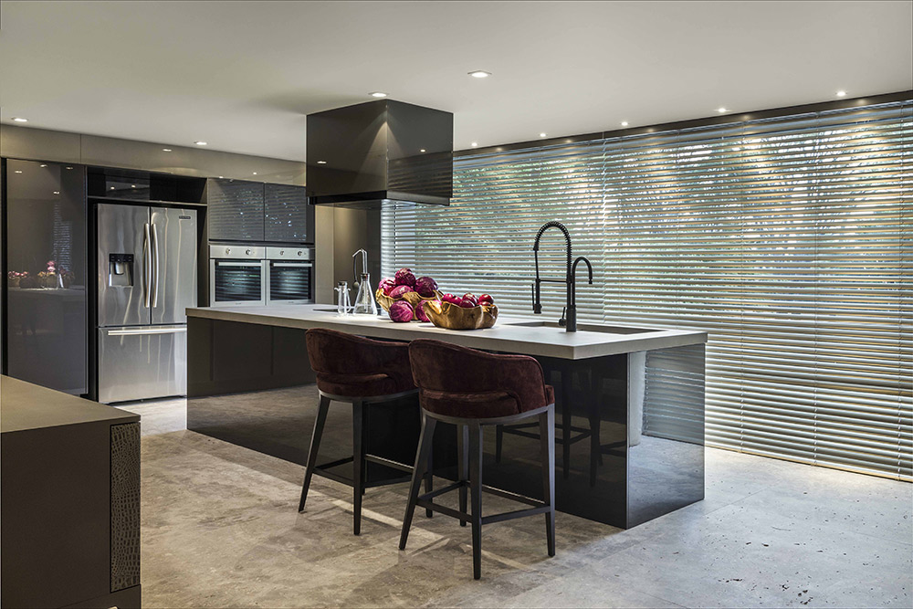 - Living para um Gourmet – Yeda Garcia. O ambiente amplo e naturalmente iluminado permitiu trabalhar volumes na cor preta, mantendo a leveza. Linhas retas e funcionais são bem representadas nos móveis fixos em alto brilho, que dispensam puxadores para um visual limpo.