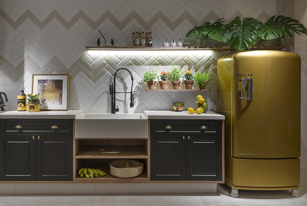- Com Açúcar, Com Afeto – Marcelo Marcolino e Desirée Nassaralla. O antigo e o contemporâneo se encontram a todo o momento, seja na geladeira original com estilo cinquentinha, pintada de dourado, ou na tradicional paginação de espinha de peixe aplicada de forma moderna na parede.