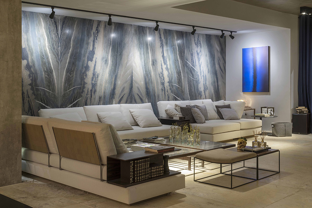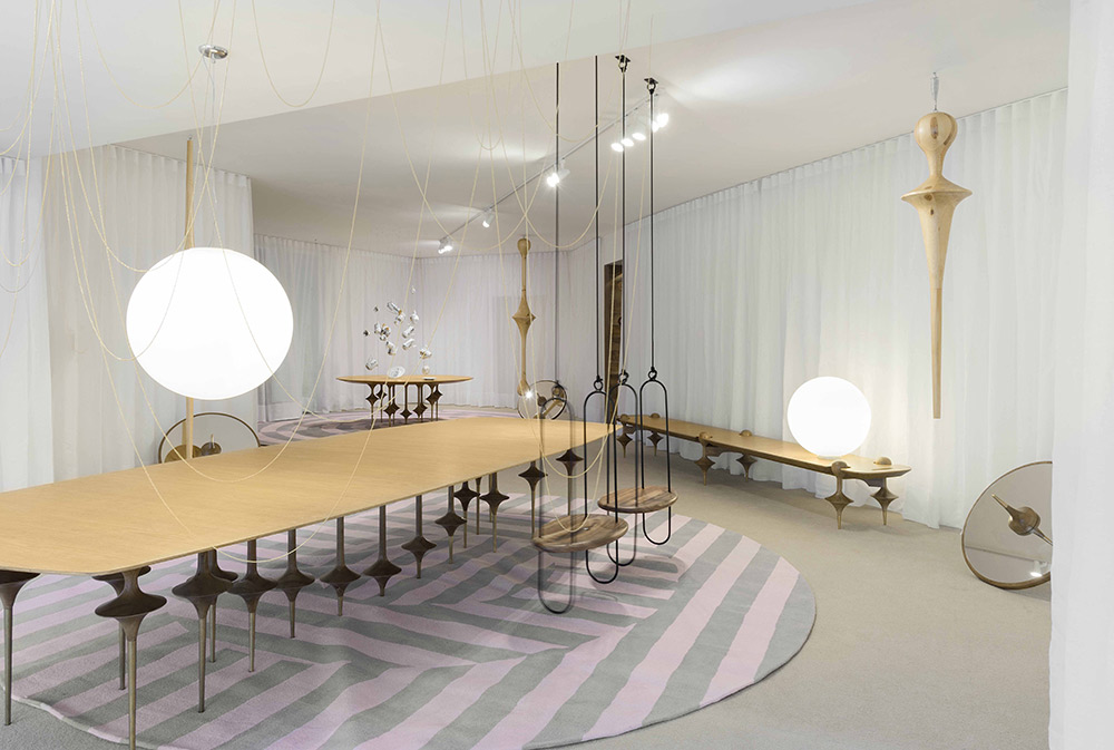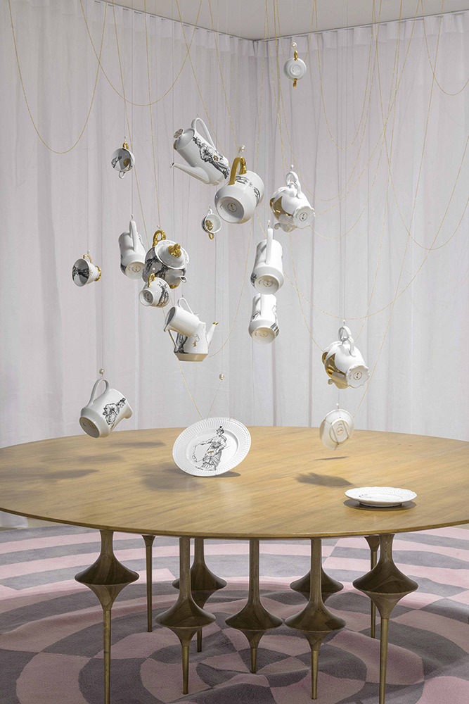 - Galeria Leo – Leo Romano. O arquiteto desafia a percepção e cria um espaço suspenso no tempo, com porcelanas desenhadas à mão expostas de maneira inovadora em uma cena de sonho.