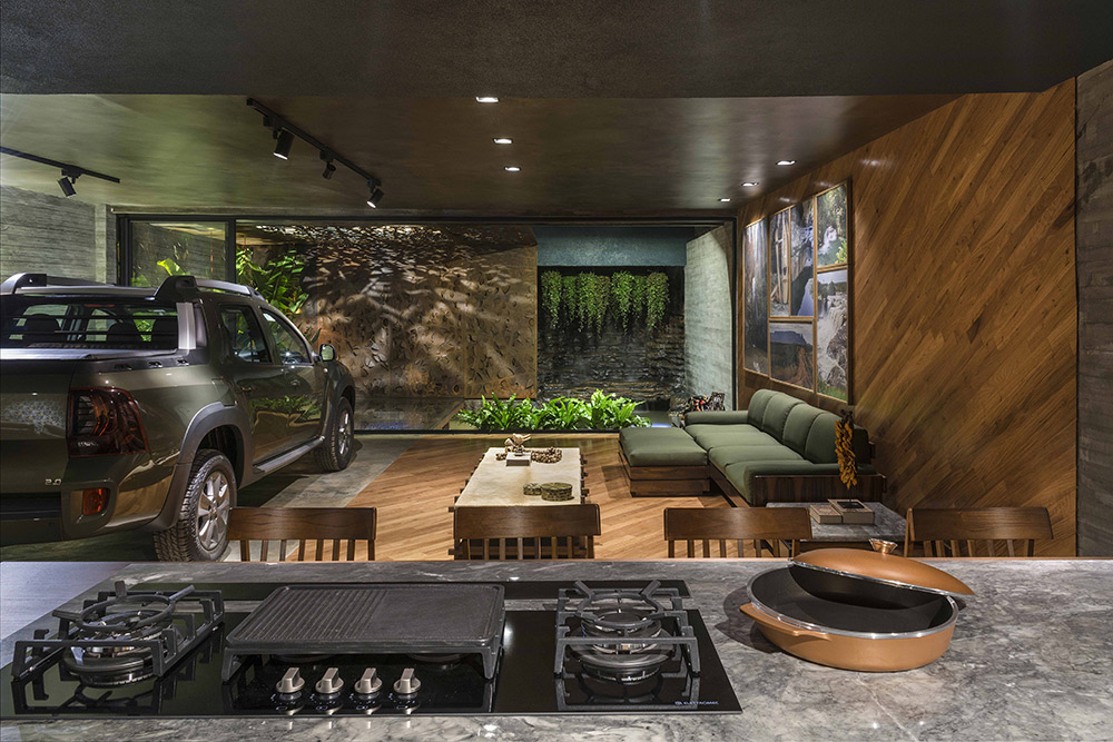 - Garagem das Rotas – Didacio Duailibe e Flávia Duailibe. O espaço com 107,24 m² de área coberta e 33,21m² descobertos transporta o visitante aos parques ecológicos do Jalapão, no Tocantins. O dourado representa o capim, enquanto o verde simboliza a vegetação, citada ainda no papel de parede com folhagens. O ambiente recebe móveis da década de 1950 e peças criadas pelo designer Maurício Arruda.