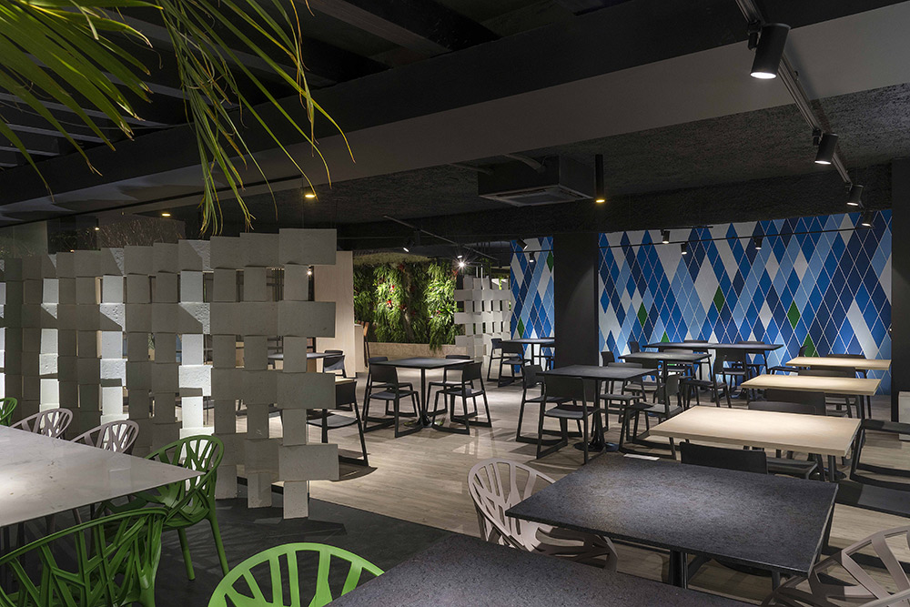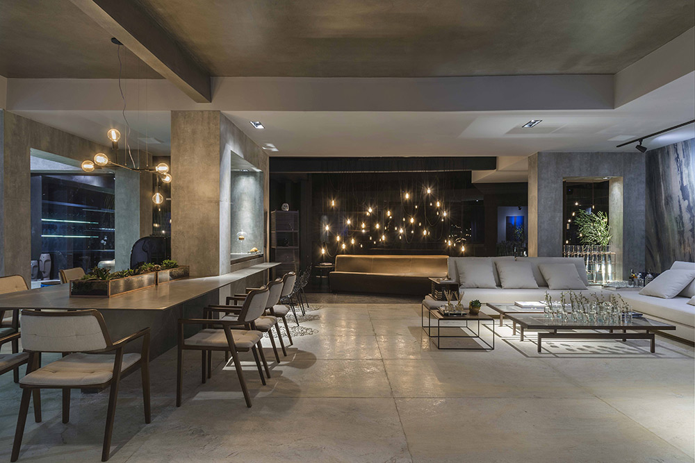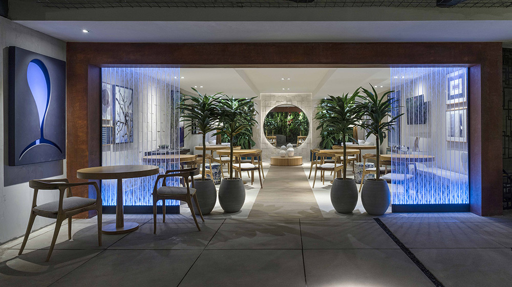 - Jardim Café – Mara Rubia. Com 141m², o espaço celebra a água, a terra, o fogo e o ar. A iluminação destaca os principais elementos, sendo um deles a lareira ecológica revestida em mármore polido e fragmentos de rochas ornamentais.