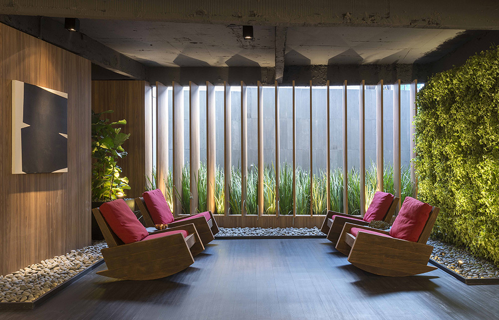 - Lounge do Encontro – Hélio Albuquerque e Sonia Peres. As relações pessoais, a presença física, a conversa entre amigos e familiares são revividas no espaço. Alguns elementos reforçam essa sensação, como o piso em madeira de demolição e mesmo o acervo de obras de arte, com obras de Hilal Sami Hilau, Amilcar de Castro e Farnese de Andrade, entre outros nomes.