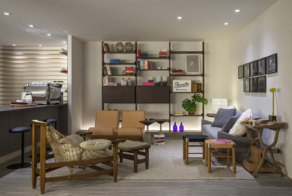 - Café – Juliana Santana. O café inicia com uma minibiblioteca, que convida a uma pausa para admirar a seleção de móveis de Jena Gillon, Oswaldo Bratke, Lina Bo Bardi, Lia Siqueira, Ricardo Fasanello e Jorge Zalszupin. O balcão em ilha permite apreciar os diferentes métodos de preparo da bebida.