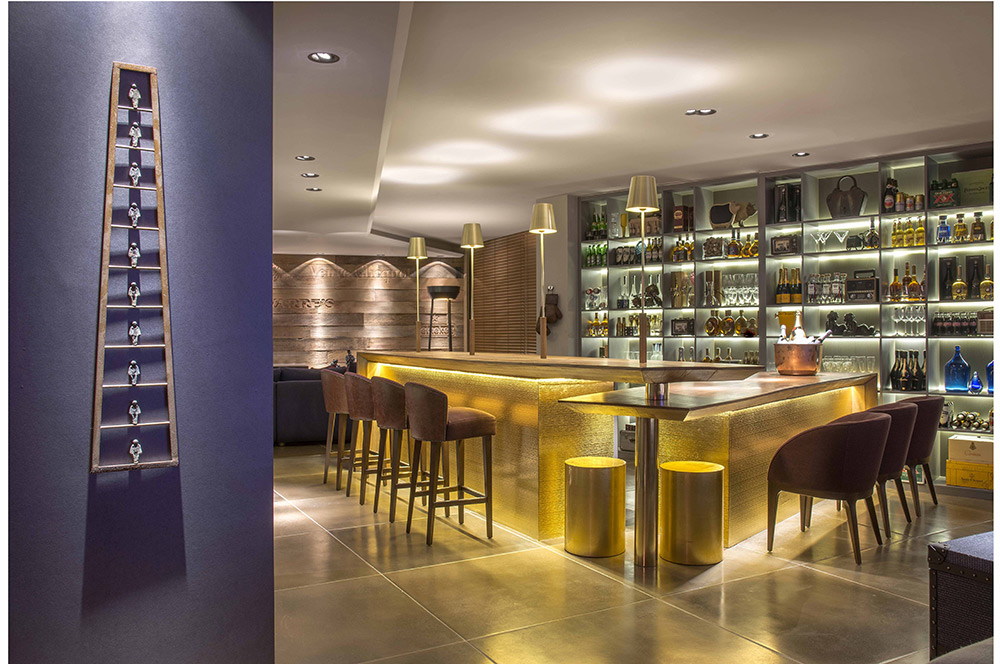 - Vinho Bar – Roberto Carril. Das belezas do Cais de Gaia, em Vila Nova de Gaia, Portugal, veio a ideia para o projeto. Com a iluminação, ele foi tingido com o mesmo azul dos azulejos portugueses, que também são aplicados no espaço. Ele inclui mesas de degustação e uma cozinha funcional. Ao combinar estes elementos, peças de acervo pessoal e materiais como tijolos e vergalhões, o arquiteto propõe um estilo industrial desconstruído.