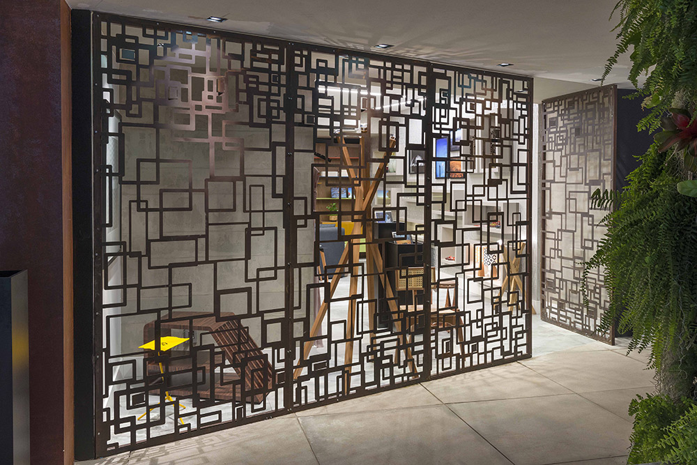 - Loja – Raul Azevedo e Álvaro França. O ambiente celebra Brasília com peças que trazem referência ao design local. O primeiro impacto vem na fachada vazada, produzida em aço corten.