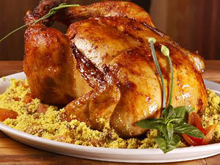 ·        Ceia Sofisticada: Arroz com amêndoas na manteiga, salada natalina com bacalhau, grão de bico e frutas secas, terrine se salmão com vinagrete de manga, alcaparras e erva doce, peru inteiro assadorecheado com cuscuz marroquino, decorado com frutas ao molho de vinho do porto, tender ao molho de mostarda e mel, mousseline de batata baroa, farofa noite feliz (uvas passas, ameixa e milho verde), ravióli de brie e damasco ao molho branco e, de sobremesa, zucotto, rabanadas recheadas com doce de leite e quindão. Valor: R$ 80,00 por pessoa.