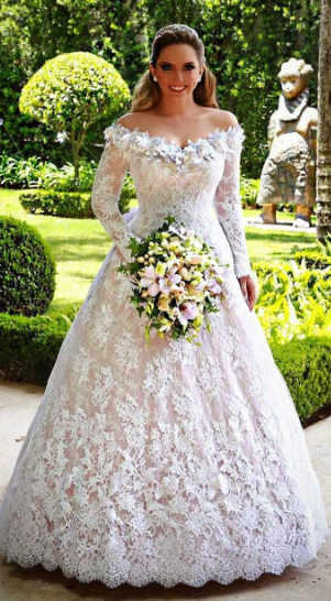 Para variados gostos e estilos! Qual o seu favorito?! E vamos agora ao vestido Sandro Barros escolhido pela noiva, com fundo rosé e aplicações tridimensionais!