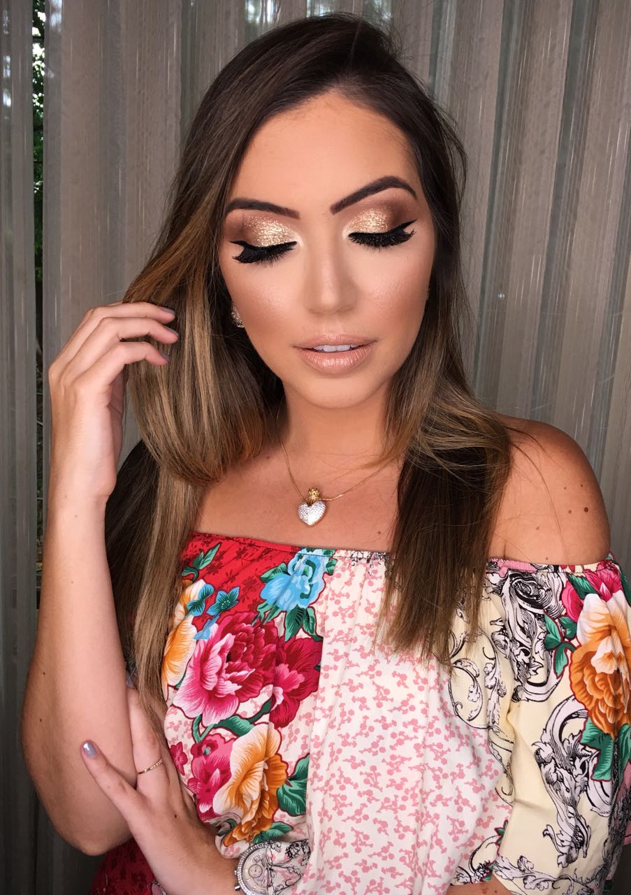 Grifinas! A make que usei no reveillon deu o que falar! E claro que eu tinha que compartilhar em detalhes aqui com vocês! A responsável por esta transformação foi a top maquiadora Vanessa Klein, que retorna a Brasília em 2018, para nossa alegria! Ela utilizou, como sombra, o gliter Gold da M.A.C., para arrematar a produção! E o resultado ficou inacreditável! Me senti uma verdadeira diva de capa de revista!