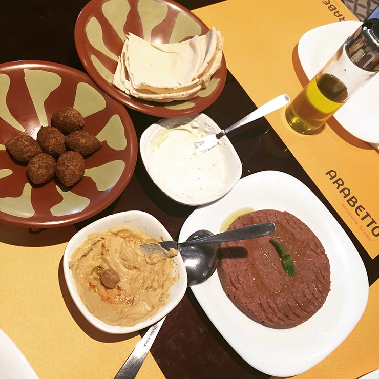 Já na quarta-feira (1 de junho) estive no Arabetto, na 408 sul, em uma degustação dos pratos servidos na casa. Eu sou completamente apaixonada por comida árabe, e ainda não conhecia o Arabetto. Fiquei encantada com a qualidade, a variedade e os preços acessíveis! Além dos tradicionais kibes, o Arabetto conta com opções veganas, como o Falafel (bolinhos de grão de bico), e o Kibe assado de abóbora! Já adianto que recomendo demais a visita!