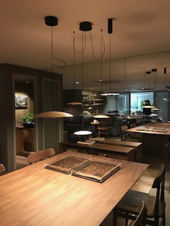 Esse ano, o que me chamou mais atenção foram as tendências industriais na decoração e iluminações com fios aparentes!