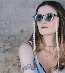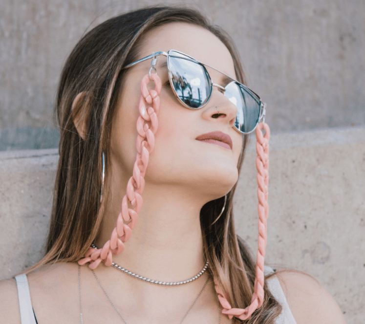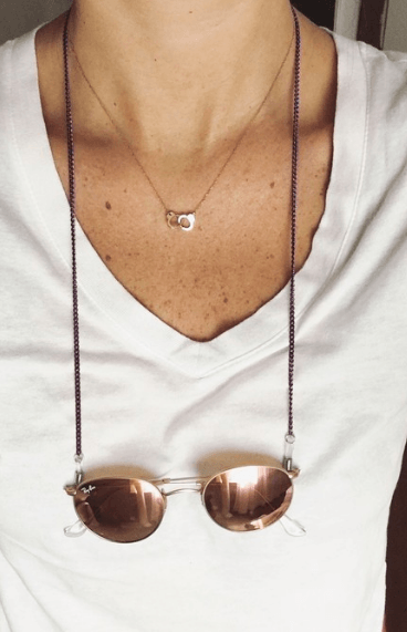 Grifinas! Quando eu vi as cordinhas dos óculos logo minha mente foi transportada aos primórdios da minha infância nos anos 90! Lembrei na hora dos meus avós usando óculos com estas cordinhas para pendurá-los! Um item do qual nem me recordava, nem nos meus mais profundos pensamentos, voltou à cena. Sim, e ele ressurge repaginado, claro! Os mais variados materiais, cores, formatos e estilos!